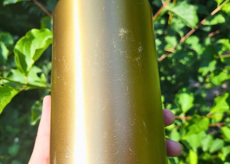 There are a few weak spots too. If Hydro Flask feels like a tank, Iron Flask is more like a sleek sports car. It looks great but isn’t quite as tough. The body picks up dents and scratches easily, and at the moment the brand still doesn’t offer powder-coated finishes. I found my first scratches on day one (see the image below). Still, my golden Iron Flask catches the morning sun beautifully, and I’m not ashamed to admit I like showing it off.