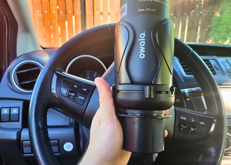 They go for about $10-$15 on Amazon, and they completely remove the stress of wondering whether your new bottle will actually fit in the car. You just drop it in, twist to adjust the grip, and suddenly even bottles you’d never expect (even some 64-ounce monsters) sit securely.