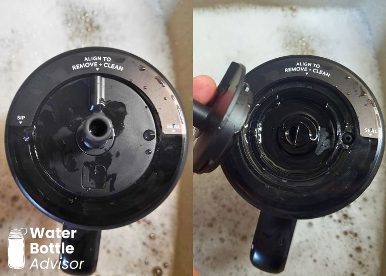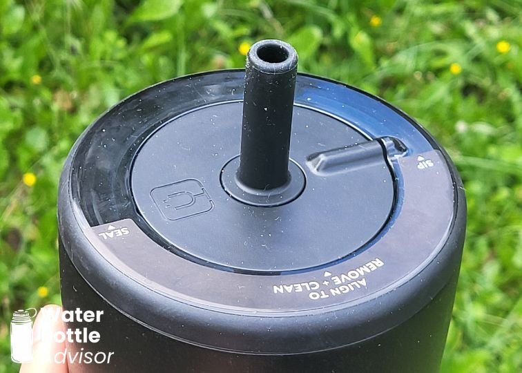 This lid is in a league of its own. It offers three modes (Sip, Seal, and Align to remove + clean) which you switch between by rotating an inner cover with a small tab. It’s clever, fun, and surprisingly practical.