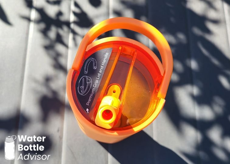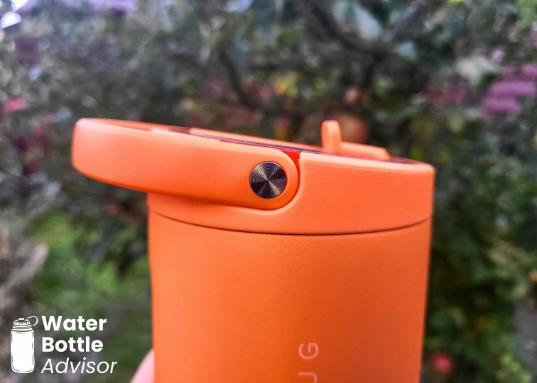 The HydroJug lid has a few more interesting things. The top is transparent, letting you see exactly how much liquid is left – a rare feature in stainless steel drinkware. The lid shape itself is slightly asymmetrical, which doesn’t really affect usability but gives it some character.