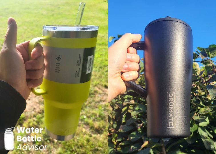 Then there’s the handle, and here I have to criticize YETI again. Their design feels thin and awkward, and although it’s marketed as “ergonomic”, it never strikes me that way. In fact, I usually end up gripping the body of the cup instead of relying on the handle. With a fully loaded tumbler weighing over four pounds, that handle just doesn’t inspire confidence.