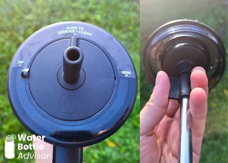 It does have a silicone spout that sticks out, which might raise an eyebrow from a hygiene perspective, but the overall system more than makes up for it. The rotating inner cover turns a full 180 degrees and gives you three distinct modes: sip, remove and clean, and seal.