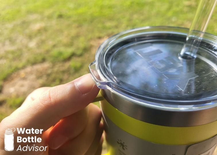 YETI, by contrast, takes a simpler approach. The lid on my Rambler is a thin piece of plastic with a hole for a straw. Functionally, it works, but two issues jump out. First, it isn’t leakproof, which means the tumbler must always stay upright. Second, opening it can be unpleasant. The small tab requires pressure from either above or below, and in practice it digs into the fingers more than it should.