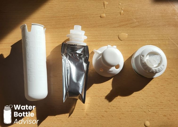 Then, when you sip, you generate negative pressure (basically, suction), which pulls the water up through the cartridge. But, and here’s the interesting part, the water doesn’t mix with the flavor until it reaches the lid. Nothing happens inside the bottle itself.