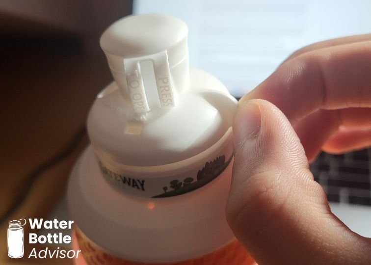 There’s also a cap covering the spout. At first I tried prying it open with my fingernails. Then I noticed two little strips on the back that literally say press to open. When you do, the cap pops open almost by itself. Tiny details like this make me like this bottle even more.