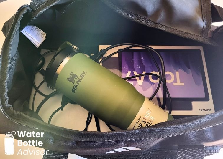 My personal favorite is the Stanley IceFlow paired with the flip straw lid. In that setup, I tested it with water starting at 37.8°F (3.2°C), and it stayed properly cold, below 59°F (15°C), for about 20 hours.