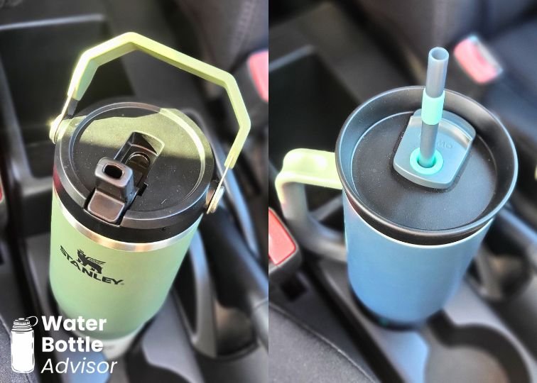 Stanley IceFlow takes a very different approach. Its straw folds neatly into the lid instead of sticking out. More hygienic and less awkward in a bag. I personally like folding straws for that reason, but they come with a catch: you can’t really operate them one-handed while driving unless, of course, you’ve remembered to pop the straw up beforehand.
